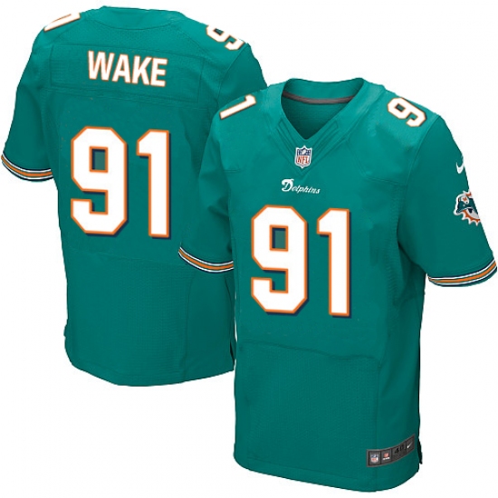 Men's Nike Miami Dolphins #91 Cameron Wake Elite Aqua Green Team Color NFL Jersey