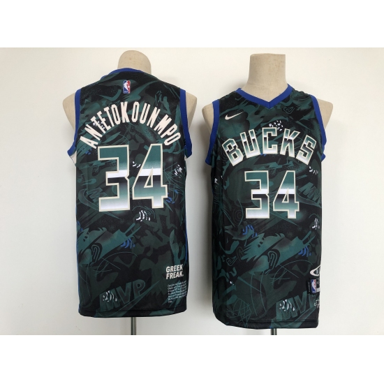 Men's Milwaukee Bucks #34 Giannis Antetokounmpo Hunter Black Authentic Jersey