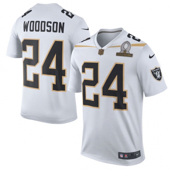 Men's Nike Oakland Raiders #24 Charles Woodson Elite White Team Rice 2016 Pro Bowl NFL Jersey