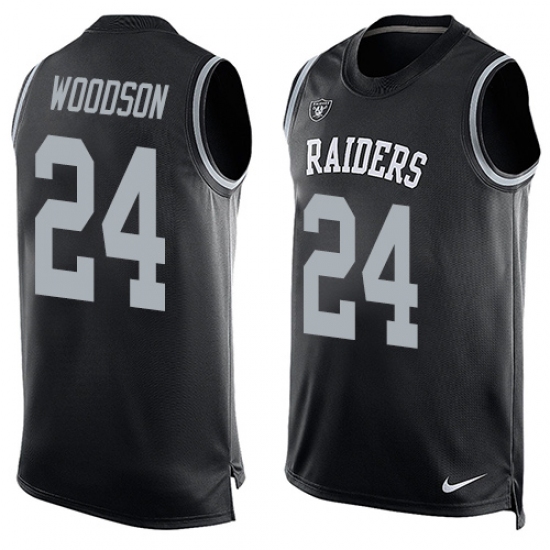 Men's Nike Oakland Raiders #24 Charles Woodson Limited Black Player Name & Number Tank Top NFL Jersey