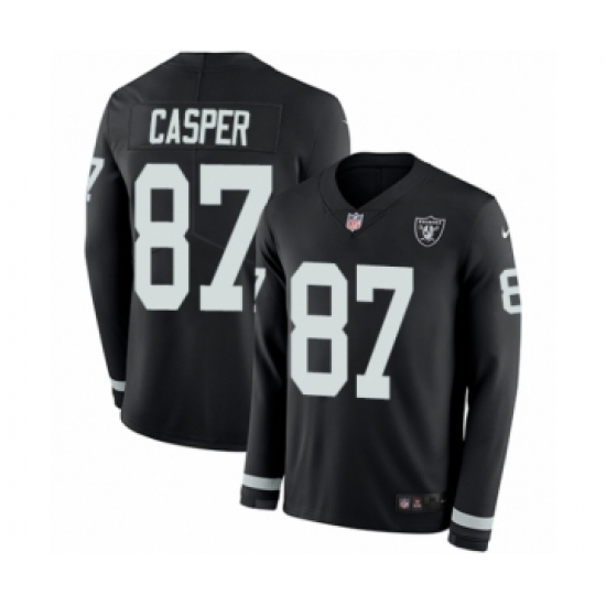 >Men's Nike Oakland Raiders #87 Dave Casper Limited Black Therma Long Sleeve NFL Jersey
