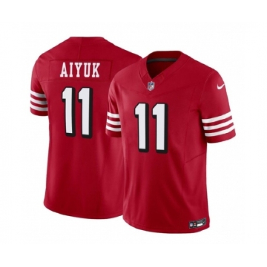 >Men's Nike San Francisco 49ers #11 Brandon Aiyuk Red 2023 F.U.S.E. Vapor Limited Throwback Football Stitched Jersey