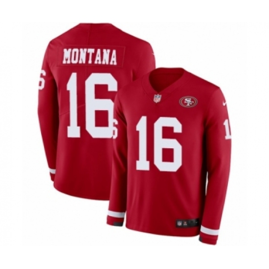 Men's Nike San Francisco 49ers #16 Joe Montana Limited Red Therma Long Sleeve NFL Jersey