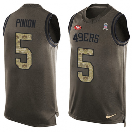 Home>NFL>San Francisco 49ers>Bradley Pinion>Men's Nike San Francisco 49ers #5 Bradley Pinion Limited Green Salute to Service Tank Top NFL Jersey