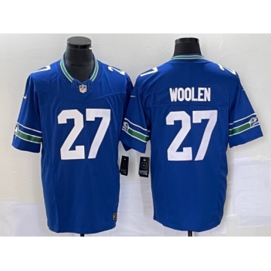 Men's Nike Seattle Seahawks #27 Tariq Woolen Blue 2023 FUSE Vapor Limited Throwback Stitched Jersey
