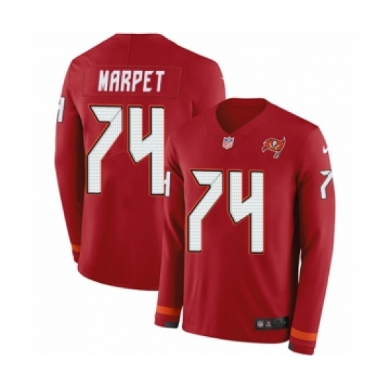 >Men's Nike Tampa Bay Buccaneers #74 Ali Marpet Limited Red Therma Long Sleeve NFL Jersey