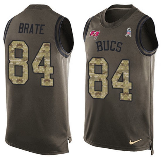 Home>NFL>Tampa Bay Buccaneers>Cameron Brate>Men's Nike Tampa Bay Buccaneers #84 Cameron Brate Limited Green Salute to Service Tank Top NFL Jersey