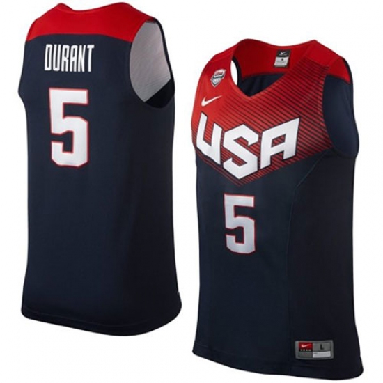 Men's Nike Team USA #5 Kevin Durant Authentic Navy Blue 2014 Dream Team Basketball Jersey