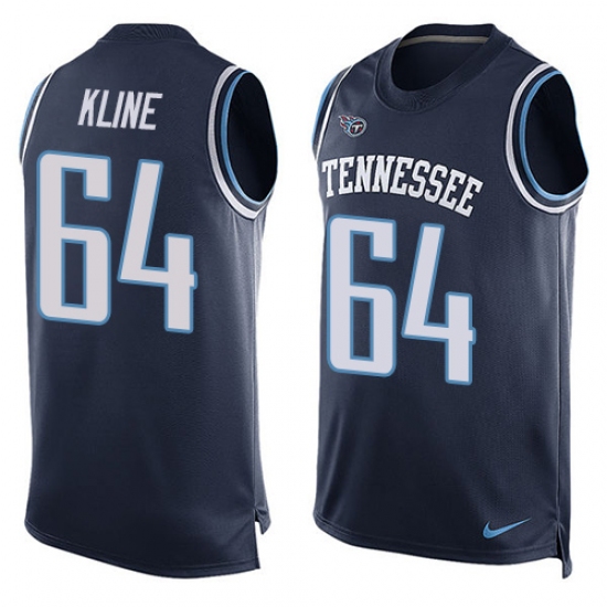 Home>NFL>Tennessee Titans>Josh Kline>Men's Nike Tennessee Titans #64 Josh Kline Limited Navy Blue Player Name & Number Tank Top NFL Jersey