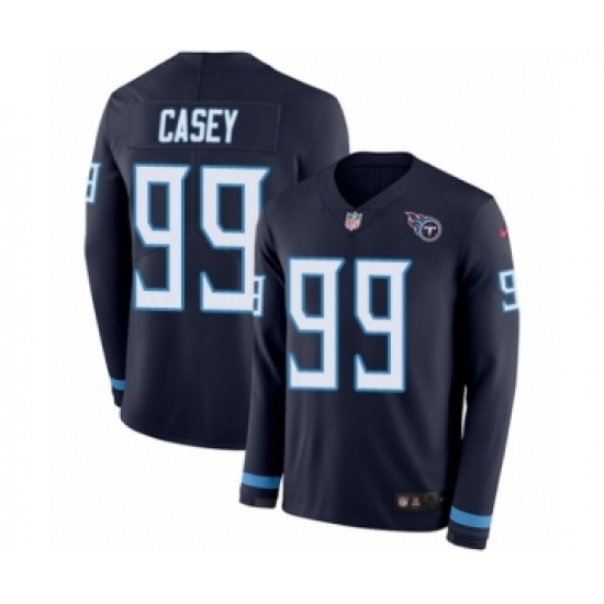 >Men's Nike Tennessee Titans #99 Jurrell Casey Limited Navy Blue Therma Long Sleeve NFL Jersey