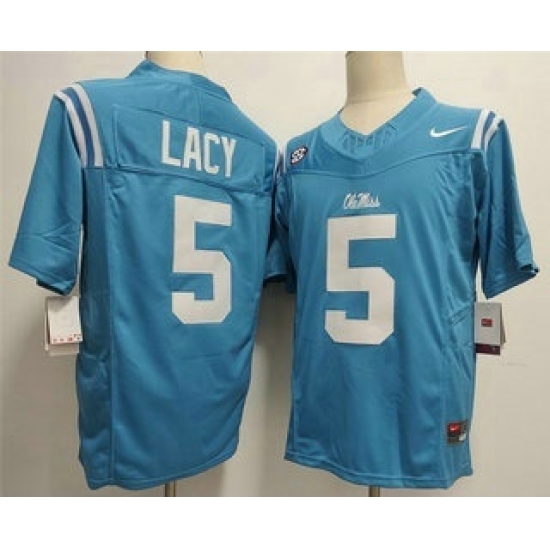>Men's Ole Miss Rebels #5 Kewan Lacy Limited Light Blue FUSE College Football Jersey