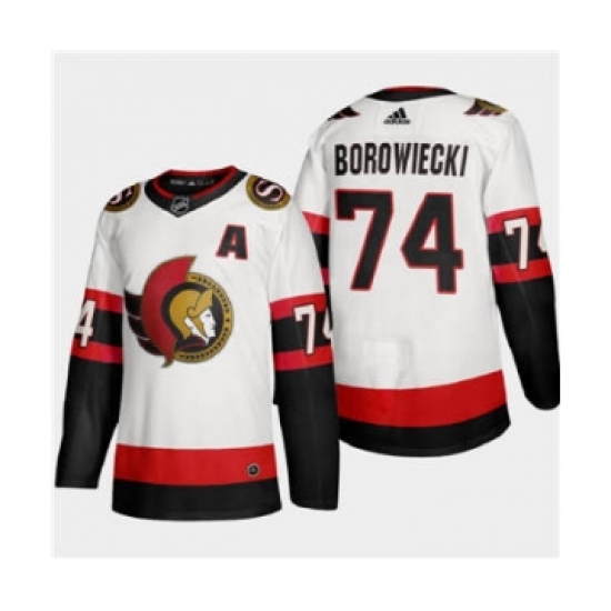 Men's Ottawa Senators #74 Mark Borowiecki White 2020-21 Authentic Player Away Stitched Hockey Jersey