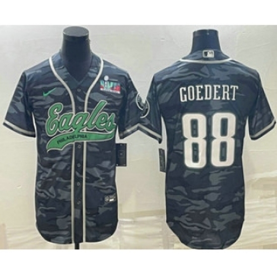 >Men's Philadelphia Eagles #88 Dallas Goedert Grey Camo With Super Bowl LVII Patch Cool Base Stitched Baseball Jersey