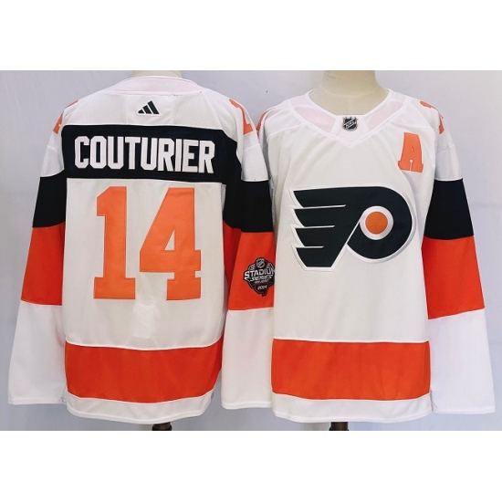 >Men's Philadelphia Flyers #14 Sean Couturier White 2024 Stadium Series Stitched Jersey