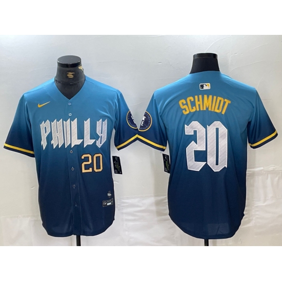 >Mens Philadelphia Phillies #20 Mike Schmidt Blue 2024 City Cool Base Jersey