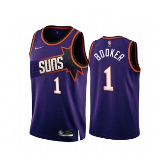 Men's Phoenix Suns #1 Devin Booker 2022-23 Purple 75th Anniversary Icon Edition Stitched Jersey