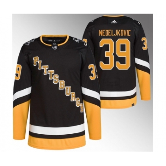 >Men's Pittsburgh Penguins #39 Alex Nedeljkovic Black 2021-22 Alternate Primegreen Stitched Jersey