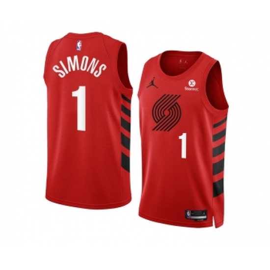 Men's Portland Trail Blazers #1 Anfernee Simons 2022-23 Red Statement Edition Swingman Stitched Basketball Jersey