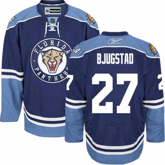 Home>NHL>Florida Panthers>Nick Bjugstad>Men's Reebok Florida Panthers #27 Nick Bjugstad Authentic Navy Blue Third NHL Jersey