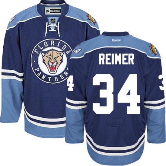 Home>NHL>Florida Panthers>James Reimer>Men's Reebok Florida Panthers #34 James Reimer Authentic Navy Blue Third NHL Jersey