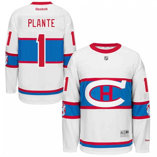 Men's Reebok Montreal Canadiens #1 Jacques Plante Premier White 2016 Winter Classic NHL Jersey