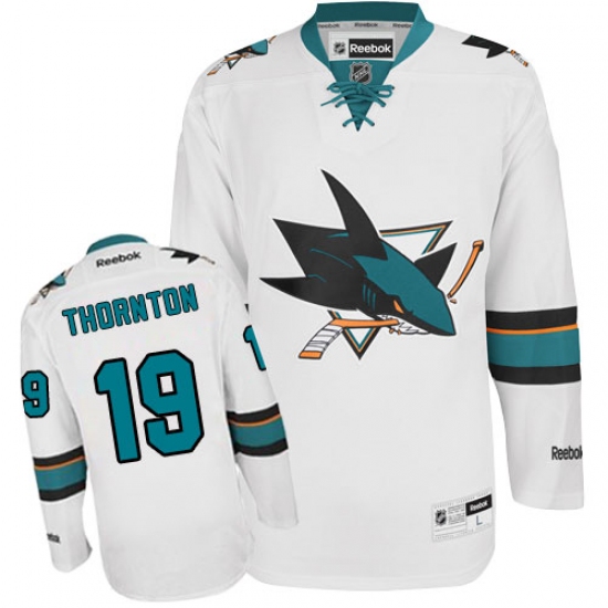 Home>NHL>San Jose Sharks>Joe Thornton>Men's Reebok San Jose Sharks #19 Joe Thornton Authentic White Away NHL Jersey