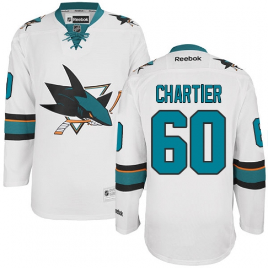 Men's Reebok San Jose Sharks #60 Rourke Chartier Authentic White Away NHL Jersey