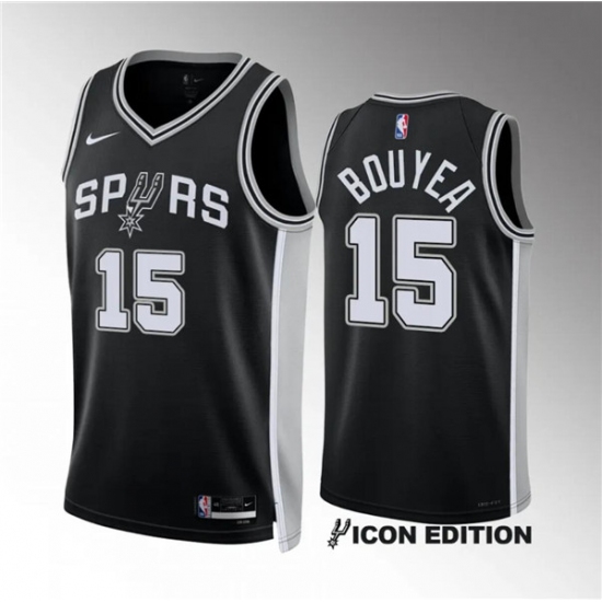 Men's San Antonio Spurs #15 Jamaree Bouyea Black Icon Edition Stitched Basketball Jersey