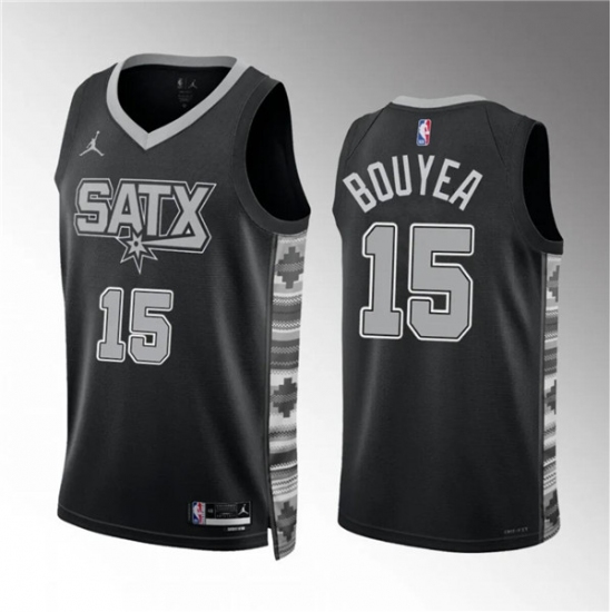 >Men's San Antonio Spurs #15 Jamaree Bouyea Black Statement Edition Stitched Basketball Jersey