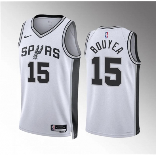 Men's San Antonio Spurs #15 Jamaree Bouyea White Association Edition Stitched Basketball Jersey