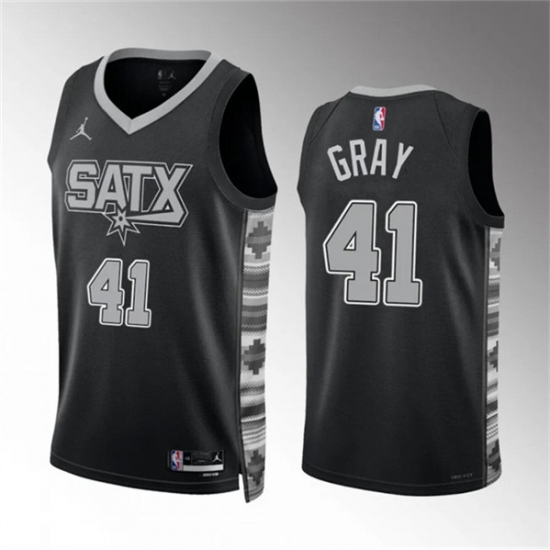 Men's San Antonio Spurs #41 Raiquan Gray Black Statement Edition Stitched Basketball Jersey