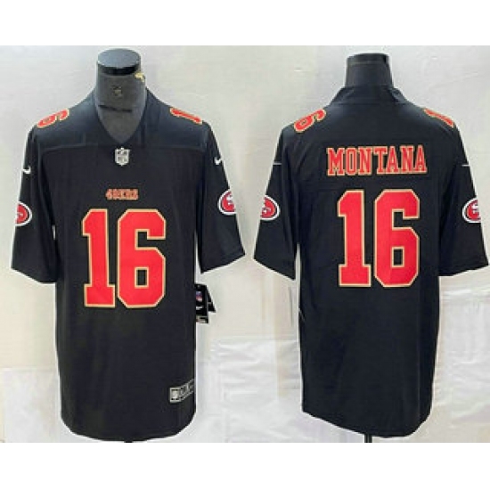 Men's San Francisco 49ers #16 Joe Montana Black Red Fashion Vapor Limited Stitched Jersey