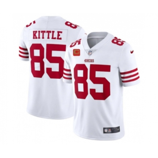 >Men's San Francisco 49ers 2022 #85 George Kittle White New Scarlet With 4-star C Patch Vapor Untouchable Limited Stitched Football Jersey