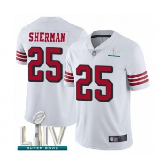 Men's San Francisco 49ers #25 Richard Sherman Limited White Rush Vapor Untouchable Super Bowl LIV Bound Football Jersey