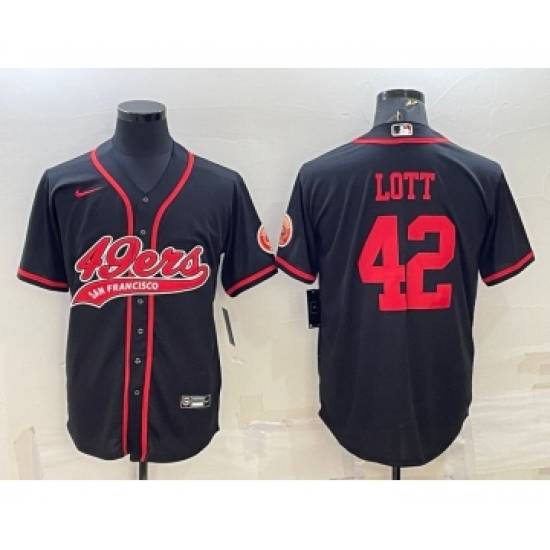 Men's San Francisco 49ers #42 Ronnie Lott Black With Patch Cool Base Stitched Baseball Jersey