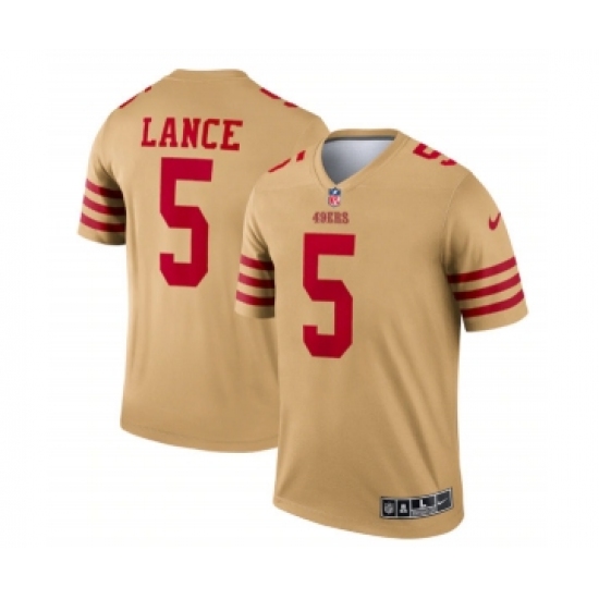 >Men's San Francisco 49ers #5 Trey Lance 2022 New Gold Inverted Legend Stitched Football Jersey