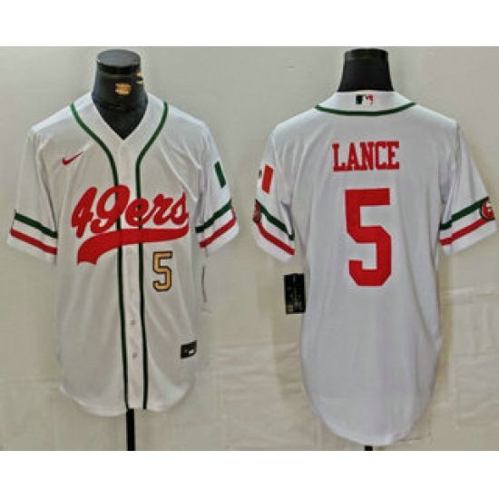 Men's San Francisco 49ers #5 Trey Lance White Mexico Cool Base Stitched Baseball Jersey