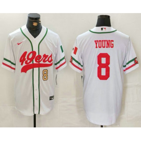 Men's San Francisco 49ers #8 Steve Young Number White Mexico Cool Base Stitched Baseball Jersey