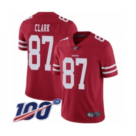 >Men's San Francisco 49ers #87 Dwight Clark Red Team Color Vapor Untouchable Limited Player 100th Season Football Jersey