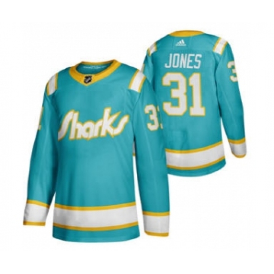 >Men's San Jose Sharks #31 Martin Jones 2020 Throwback Authentic Player Hockey Jersey