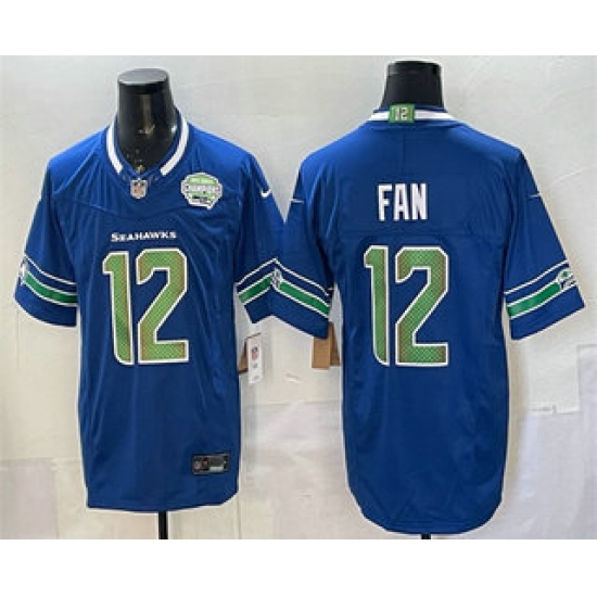 >Men's Seattle Seahawks #12 Fan Royal FUSE 2025 NFC West Champions Limited Stitched Jersey
