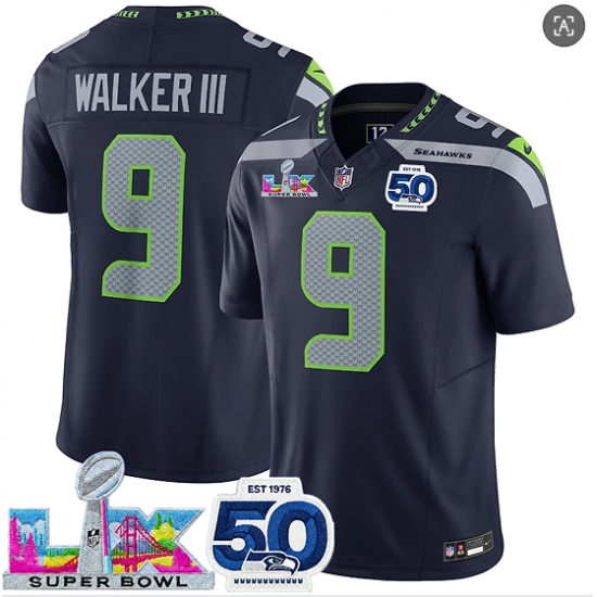 Men's Seattle Seahawks #9 Kenneth Walker III Navy 2025 F.U.S.E. Super Bowl LX And 50th Season Vapor Limited Football Stitched Jersey