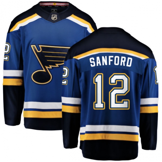 Home>NHL>St. Louis Blues>Zach Sanford>Men's St. Louis Blues #12 Zach Sanford Fanatics Branded Royal Blue Home Breakaway NHL Jersey