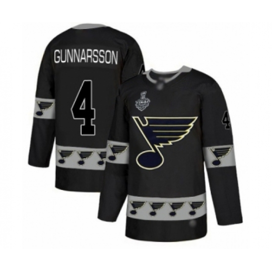 >Men's St. Louis Blues #4 Carl Gunnarsson Authentic Black Team Logo Fashion 2019 Stanley Cup Final Bound Hockey Jersey