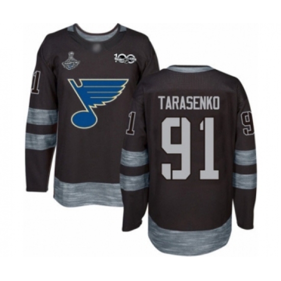 Men's St. Louis Blues #91 Vladimir Tarasenko Authentic Black 1917-2017 100th Anniversary 2019 Stanley Cup Champions Hockey Jersey