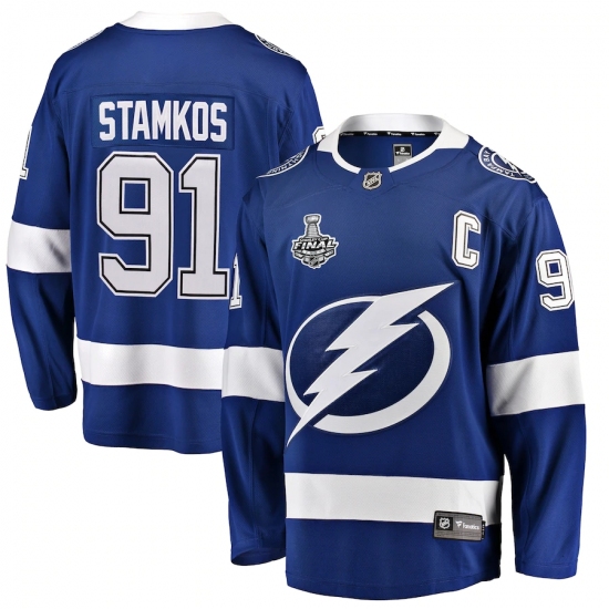 >Men's Tampa Bay Lightning #91 Steven Stamkos Fanatics Branded Blue 2020 Stanley Cup Final Bound Home Player Breakaway Jersey