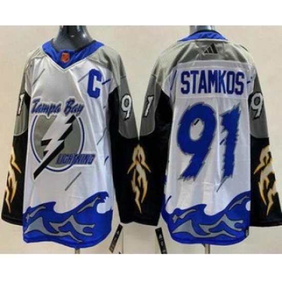 Men's Tampa Bay Lightning #91 Steven Stamkos White 2022 Reverse Retro Stitched Jersey