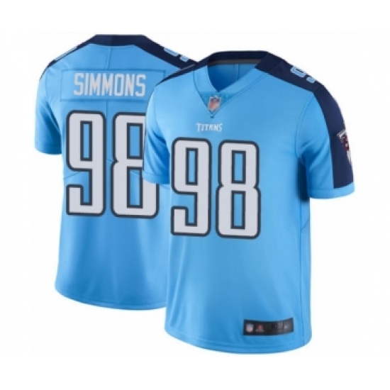 >Men's Tennessee Titans #98 Jeffery Simmons Limited Light Blue Rush Vapor Untouchable Football Jersey