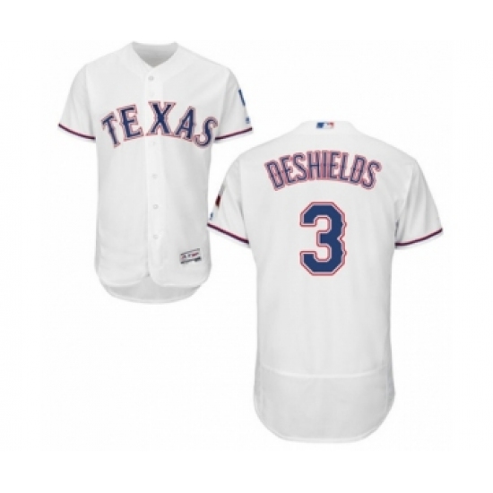 Men's Texas Rangers #3 Delino DeShields Jr. White Home Flex Base Authentic Collection Baseball Player Jersey