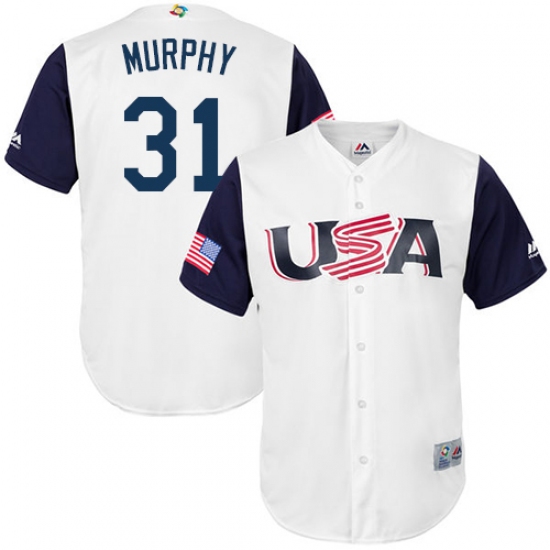 Men's USA Baseball Majestic #31 Daniel Murphy White 2017 World Baseball Classic Replica Team Jersey